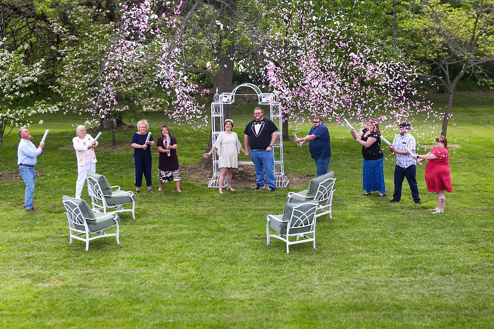 Before we were ever expecting, we knew we wanted to recreate our favorite wedding photo as a gender reveal for if/when the time came. Back Story: Our bridal party suprised us with confetti cannons right after our officiante (aka my little brother) said "You may kiss the bride!" It was perfection.