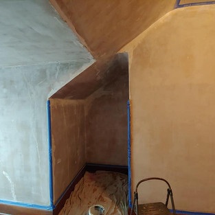 Next, we knew that there would be some fairly substantial plaster damage due to settling and water issues from the previous roof hidden by a thick layer of floral wallpaper, but how hard could fixing all that be?! Remember, we'd already done similar projects in other rooms of the house so these repairs were nothing new to us.